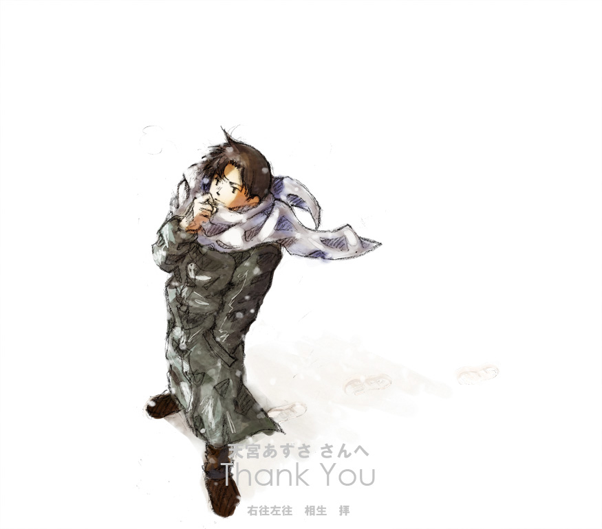 『雪の中にいる平次くん。マフラー巻いてて息が白く切なげな表情』