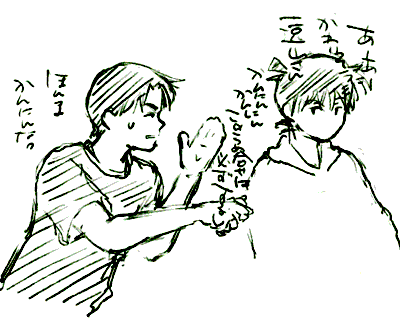 上に投げながら歩く服部と工藤。